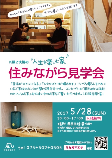 いよいよ今週末、5月28日(日)は西京区桂清水町にて戸建リノベーション住みながら見学会です♪