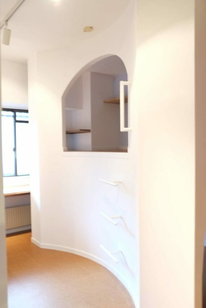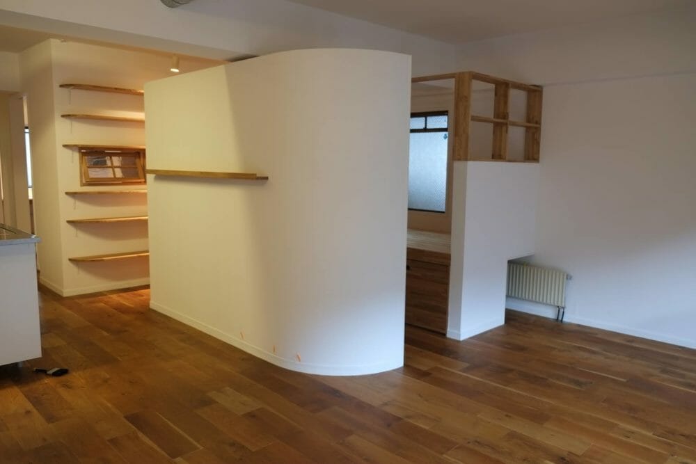 部屋の広がりを大切にしたかったので収納部分は曲線に。