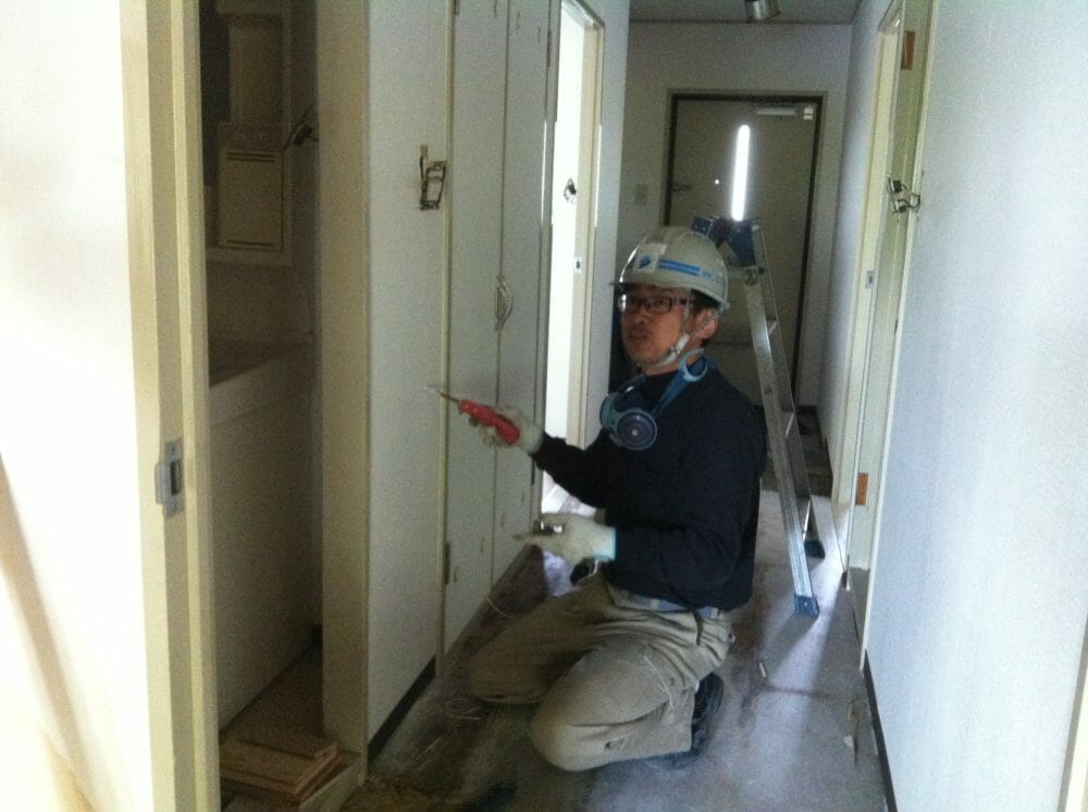 M様邸が遂に、本格解体開始しました。近隣の方に音とホコリのご迷惑を少しでも抑えるために、窓を閉め切って作業させて頂いています。
