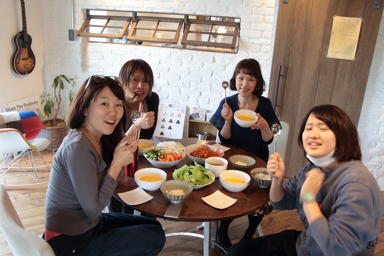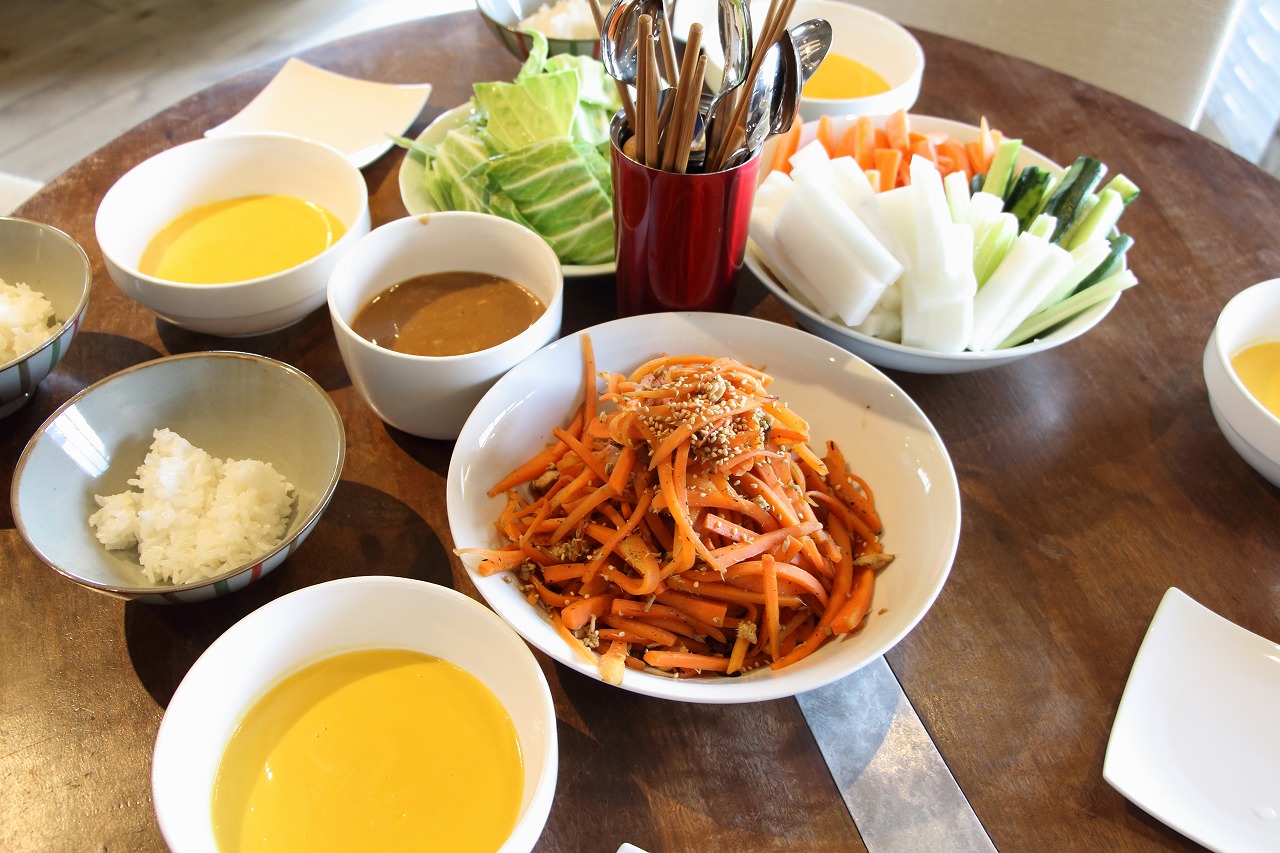 大滝さん作の人参しりしり、ヨッカ社長はナッツと味噌のつけだれ、
