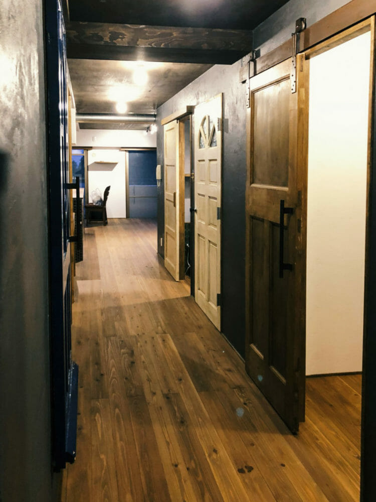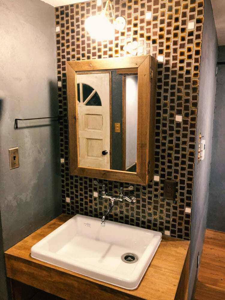 グレーの壁は漆喰に色粉を入れてDIYで塗っていただきました。