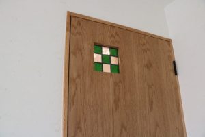 私が作らせていただいたミンサー柄のステンドグラスは、主寝室と洗面脱衣所のドアに入れてもらいました♪