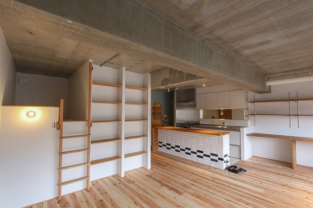 手前のロフト部分はお子様が生まれて子供部屋が必要になった時にベッドになる予定ですが、当面は収納として活用。