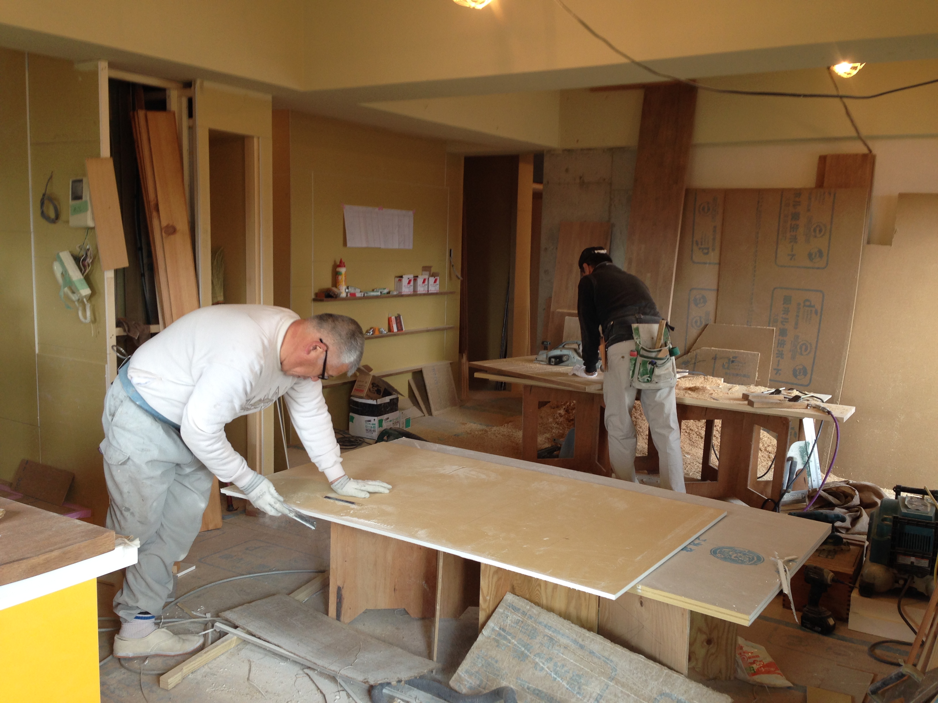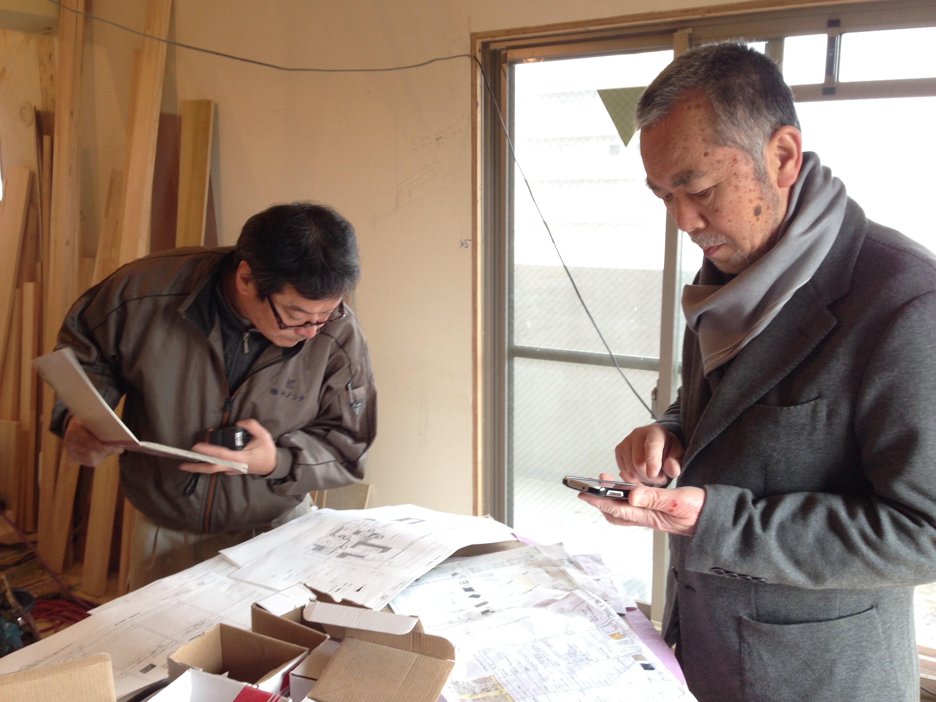 藤田さんは墨出しや配管、建具の納めなど、要所要所でチェックしにきてくれます。