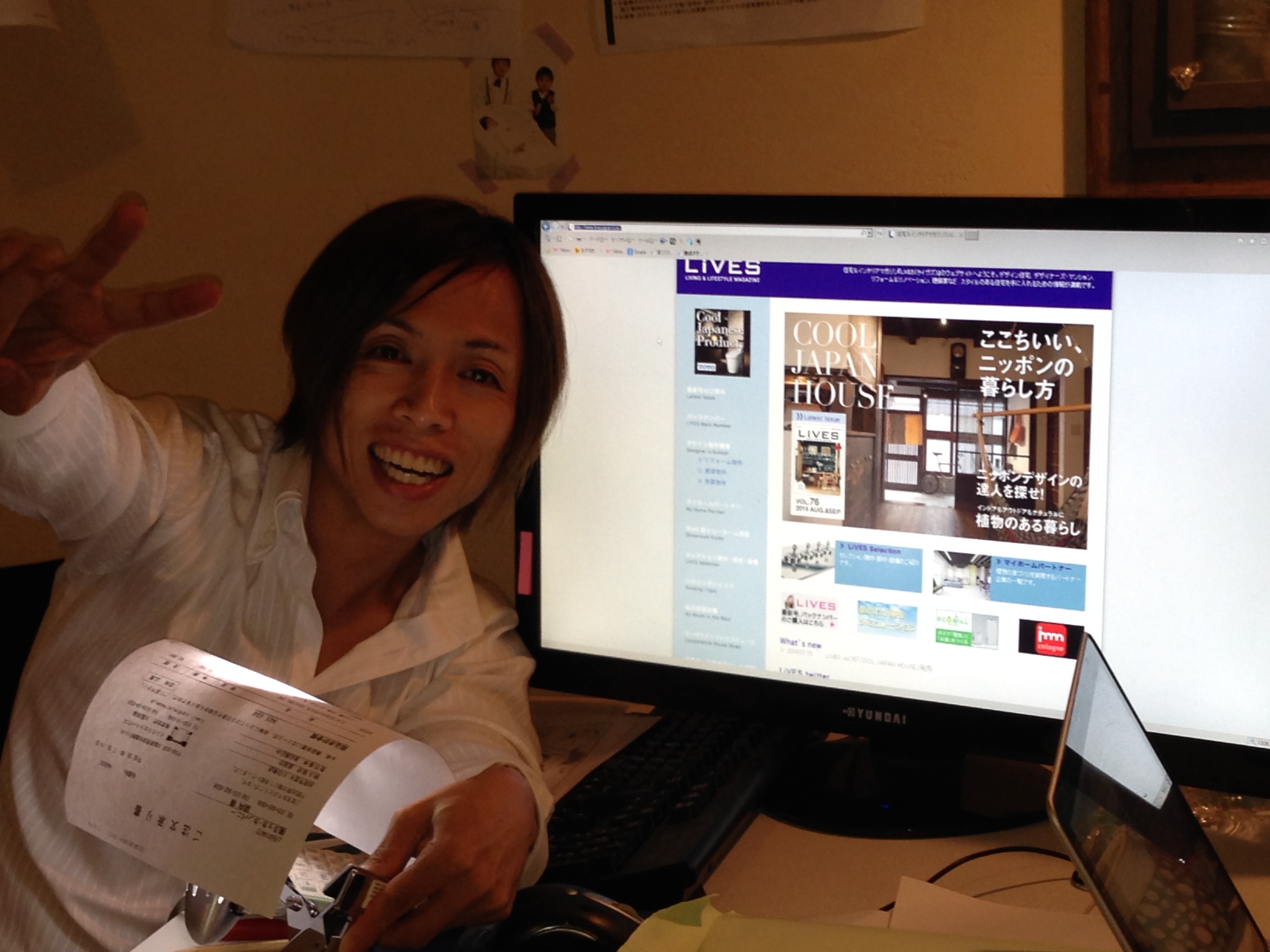 LIVESのトップにミセガマエヤの事例が使われてることを発見して喜びのピースサイン中。