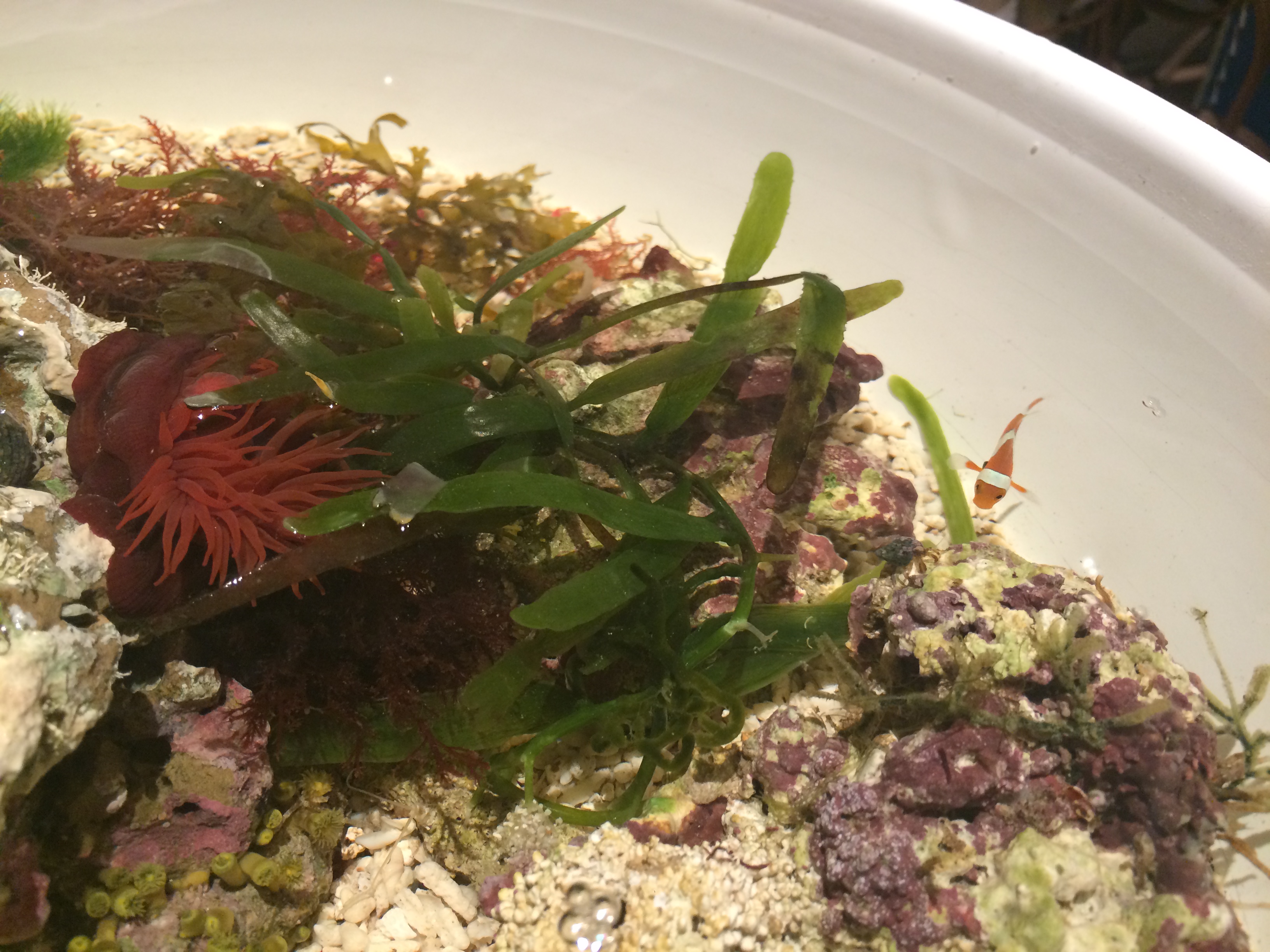赤いエビはホワイトソックス、小指の第一関節程もない小さなクマノミ、