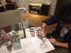 玄関廻りにメインとなるLDK、そして外観イメージ…工事予定箇所の各部を『少しでも伝わりやすく』をモットーに各所スケッチを書き込み中です鉛筆