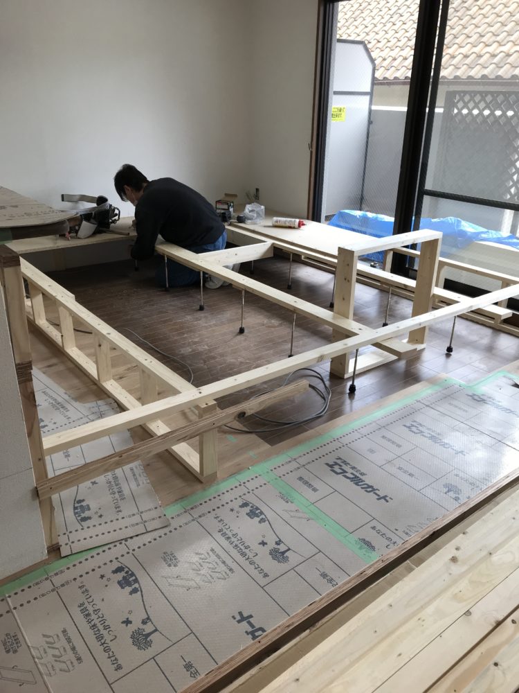 本日の工事は、小上がりです。