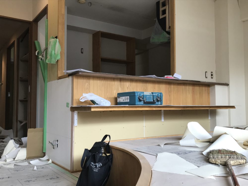 沢山落ちてるのは、既存のクロスをめくってます〜