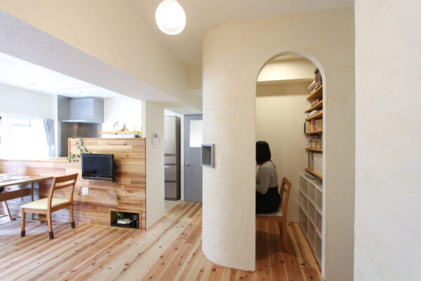 そこで、個人の部屋はしっかりとり、クローゼットも各部屋に設置。アールの壁で仕切ることで、「こもり感」を演出!自分の世界に没頭できる仕掛けです(アールで区切ることで、家族が集まるリビングも広くとれます♬)