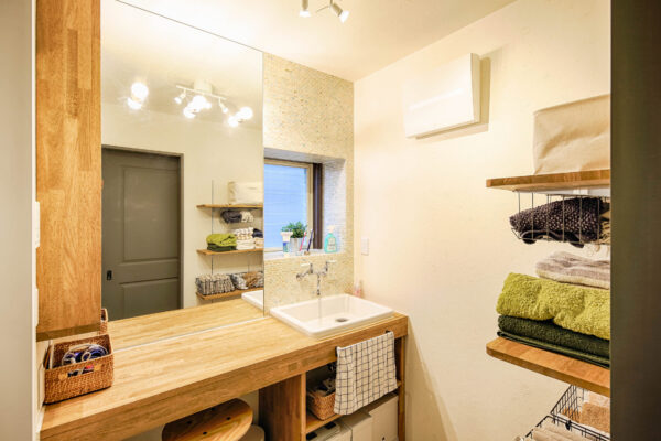 また洗面脱衣室の外に洗濯機を置くことで、洗面所を広々使えるといったメリットも◎