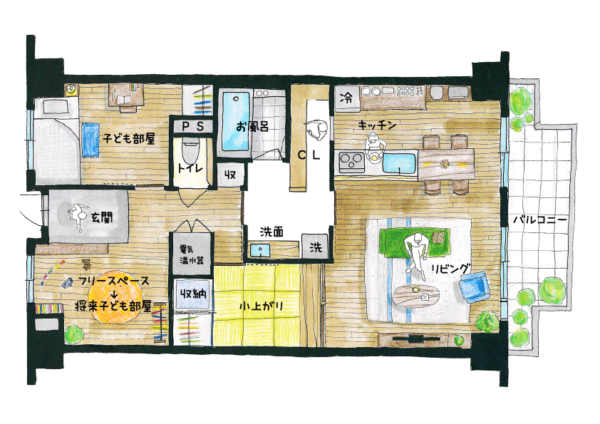 育ち盛りのお子様や、野球やサッカーなどのスポーツをされているご家族にとっては、とってもおすすめな間取りです。
