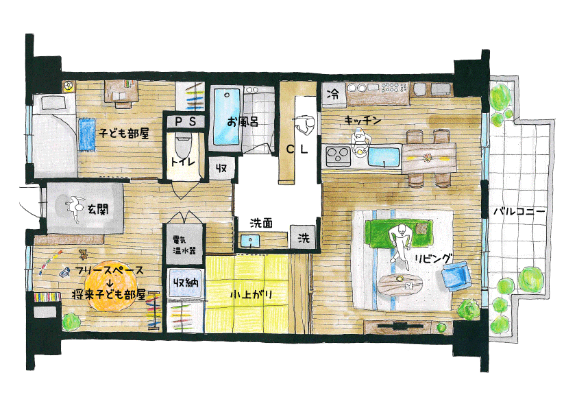育ち盛りのお子様や、野球やサッカーなどのスポーツをされているご家族にとっては、とってもおすすめな間取りです。