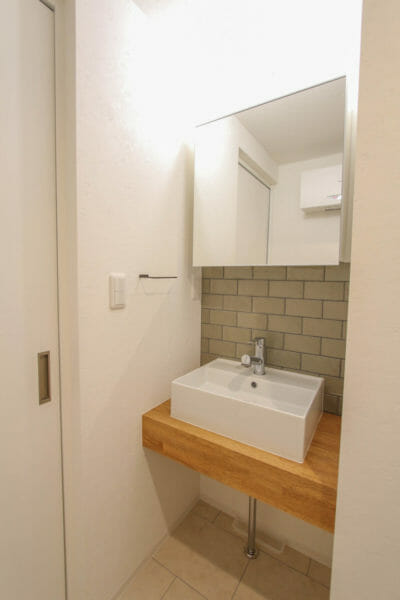 1階右奥には清潔感あふれるバスルームと洗面所が。