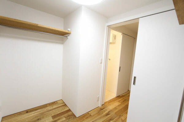 一番奥には、ファミリークローゼットがあります。このお部屋にも、床下収納庫を完備しました。