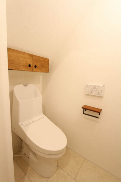 トイレにはトイレットペーパーや小物が置ける扉付きの収納があります。