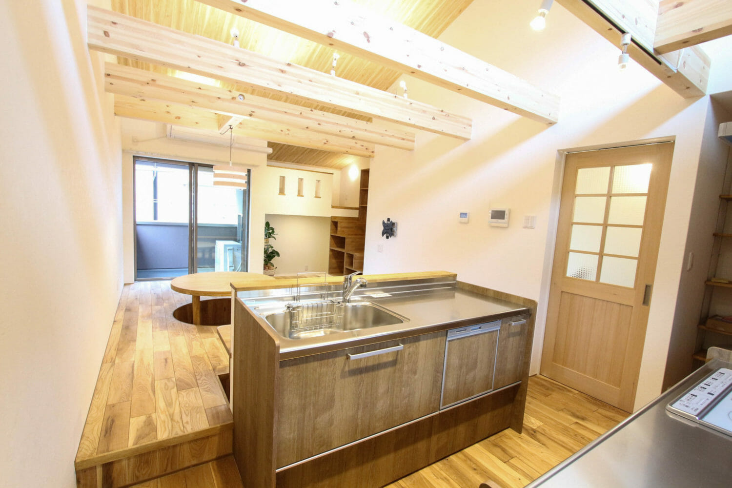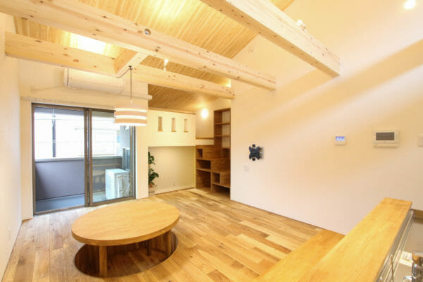 キッチンにはカウンターテーブルがついており、ここでも食事ができますし(居酒屋風♪)、丸いダイニングテーブルを皆で囲むのもいいですね。