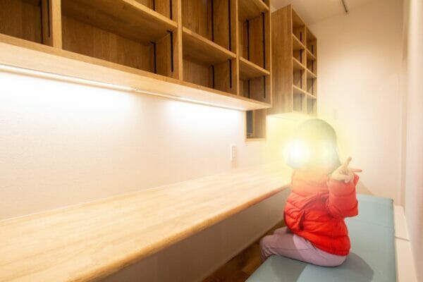 宿題を見守れたり、在宅勤務する時も便利なワークスペースもあります。