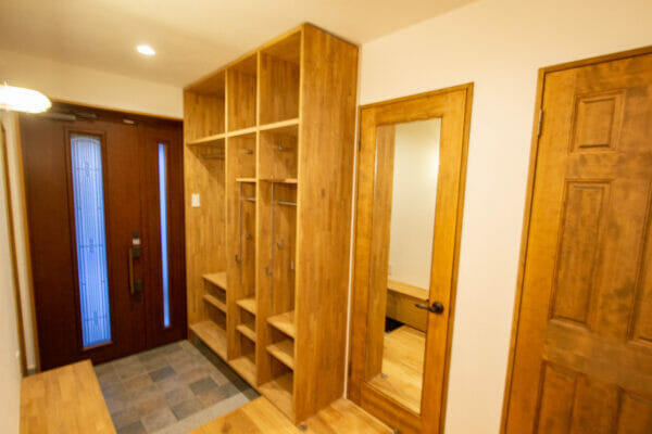 玄関を入ると収納棚。