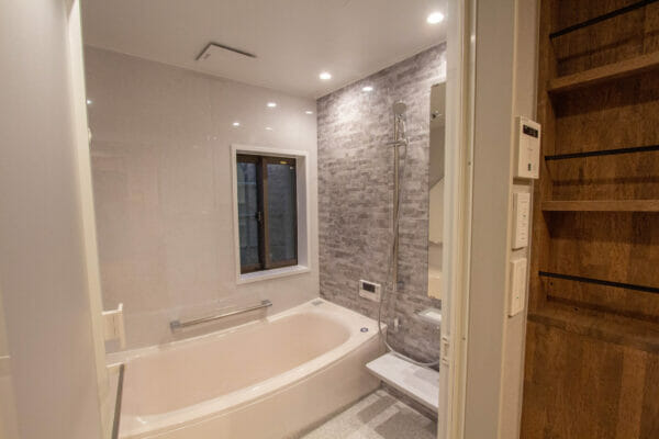 お風呂は通常サイズより大きめで、窓からは坪庭が見えてゆっくりできます。