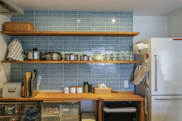 (↑はイメージです)キッチンの背面はオープン収納にして、こだわりのタイルで仕上げて、より料理が楽しくなるようなキッチンにすることをご提案させて頂きました!調理器具だけでなく、お客様の大好きなお酒やワインボトルを並べたら、ルンルンキッチンになりそうですね💗