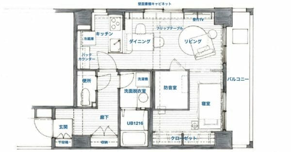 今回のリノベーションプランを考える上で非常に難しかったのが、防音室をどこに配置するか問題。マンションであるため、いかに音漏れを防ぐかがカギとなります!一般的に考えればおそらく部屋の片隅、もしくは奥に配置するのではないでしょうか🤔?