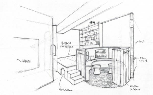 ご夫婦二人だけの名付けてラブラブクリエイティブ居酒屋(名付け親:社長)です!ここでご飯を食べてもいいし、お酒を飲んでもいいし気分に合わせて活用していただける空間になっています。壁をマグネットボードにして、会話から生まれたアイディアを書き留めておくことも可能です🥰