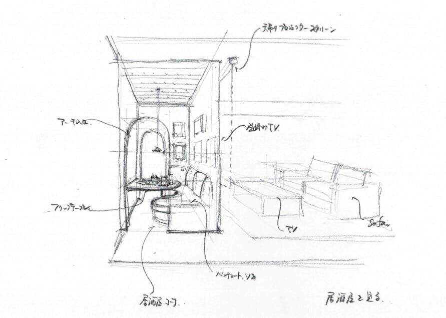 ご夫婦二人だけの名付けてラブラブクリエイティブ居酒屋(名付け親:社長)です!ここでご飯を食べてもいいし、お酒を飲んでもいいし気分に合わせて活用していただける空間になっています。壁をマグネットボードにして、会話から生まれたアイディアを書き留めておくことも可能です🥰