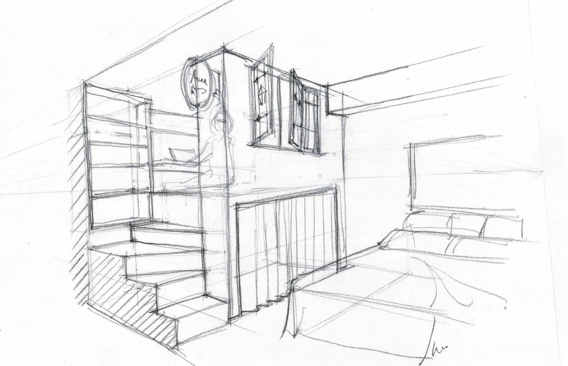 朝活をされる旦那様が、寝ている奥様を起こすことなく作業できるよう、小上がりの書斎を寝室に設けました!書斎の下は大容量の収納ができるようになっています。書斎の窓を開けて今日も元気に『おはよう🌞!』