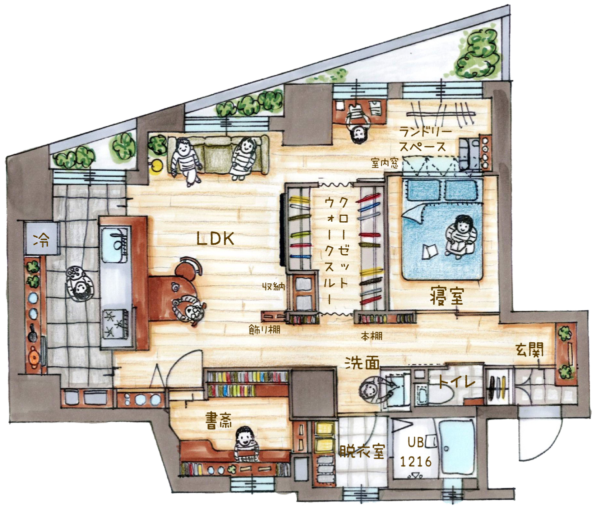 お友達を呼んで一緒に料理を楽しめる回遊キッチンや、こもり感のある書斎で集中して趣味の読書を楽しんでいただける書斎、日々の洗濯が無茶苦茶快適な洗濯動線などが見どころです♬