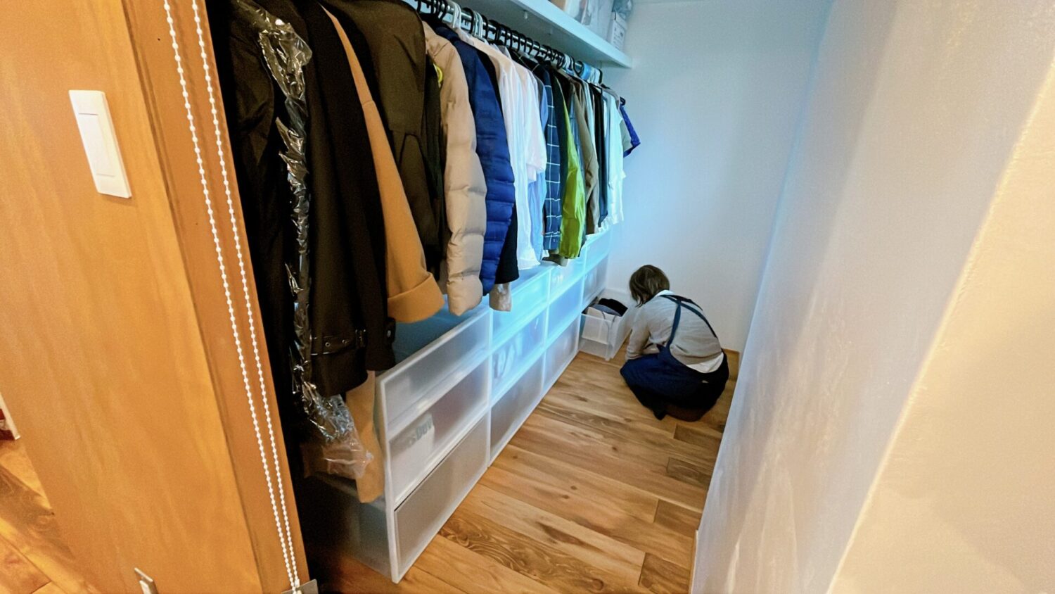 そしてクローゼットの収納は上から下へと「着ていく順番」に収納されているので、片付けするときだけでなく、服選びの際もラクラクです👗✨そしてこのタンス選びも、事前にアドバイザーさんがサイズを測って用意してくださるので、面倒な収納家具選びをする手間が省けてとってもいいなあと思いました!