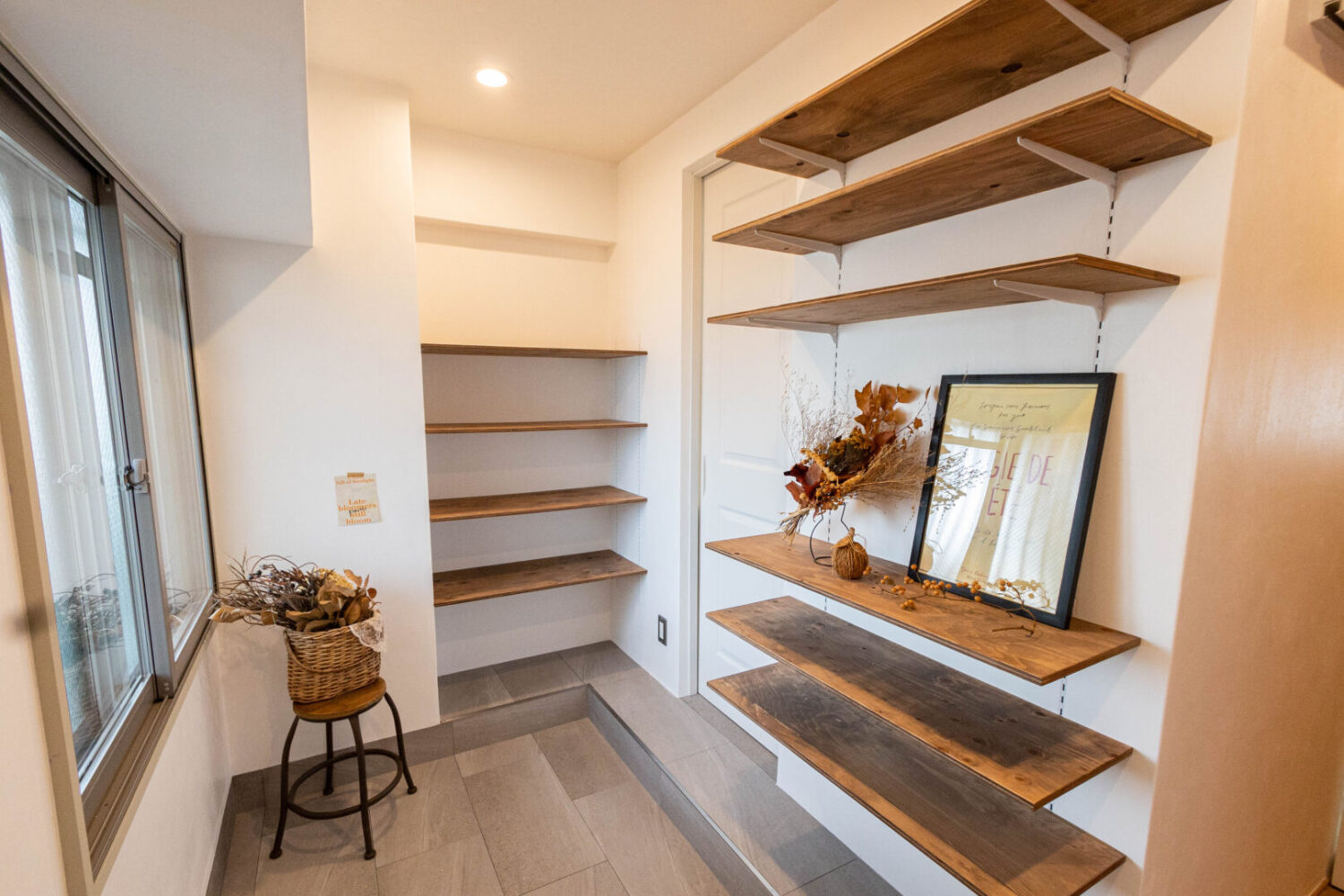 パントリーや収納棚はオープンにしているので、どこに何があるのか一目瞭然!