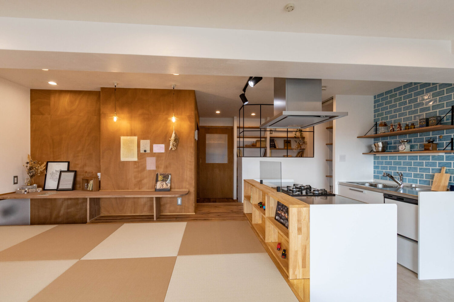 小上がりの一角には、工事中の段階からお子様のお気に入りの場所だった「スタディーコーナー」!