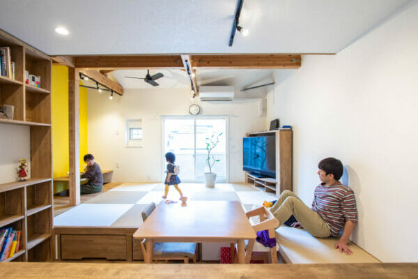 家族みんなで小上がりでくつろぐ時間♬時にごろーんと寝転がったり、明るくて天井も高くて気持ちいい空間。
