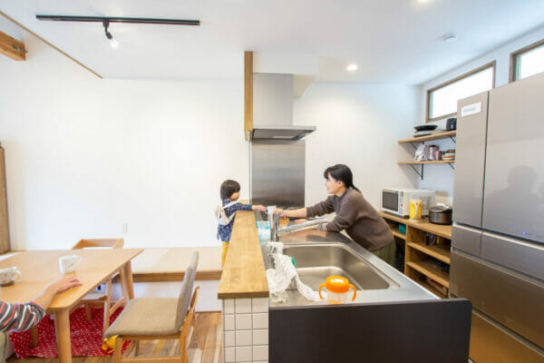 お子さんを見守りながら、ワークスペースでちょっと家計簿をつけたりパソコン作業もできますね。