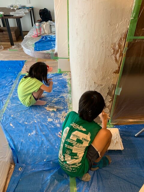 混ぜ方、塗り方などはレクチャーさせていただきますが、子供達が塗っても味わい深くなるので、本当に思い出作りに最高だなぁと思います。
