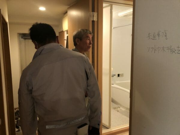 解体現場には、設計隊の中島と永井が朝から立ち会っております。解体してみないと内部が分からない部分もありますからね。