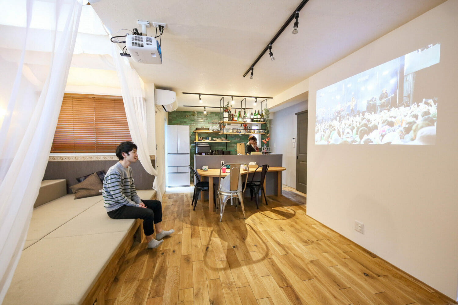 また、グランピングスペースの正面には、プロジェクターが設置されているので、ここで映画気分を味わえるようにもなっています🎬✨