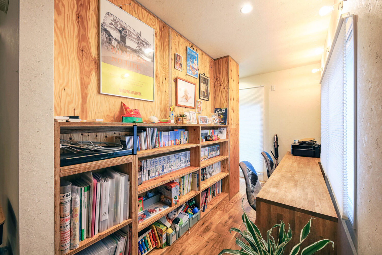 そしてさらに奥に進むとワークスペースが。ここで一呼吸落ち着いてから、完全にプライベートモードに切り替えてリビングへ♪といった感じで、この通路を通ると自然と「onとoffの切り替え」ができるようになっています。