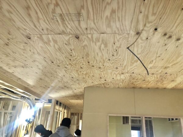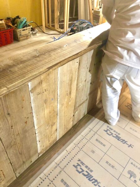 間仕切り壁の枠組みができたら、壁や天井、カウンターの腰壁など着々と進んでいきます。🏃💨