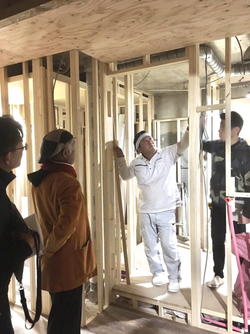 間仕切り壁の枠組みができたら、壁や天井、カウンターの腰壁など着々と進んでいきます。🏃💨