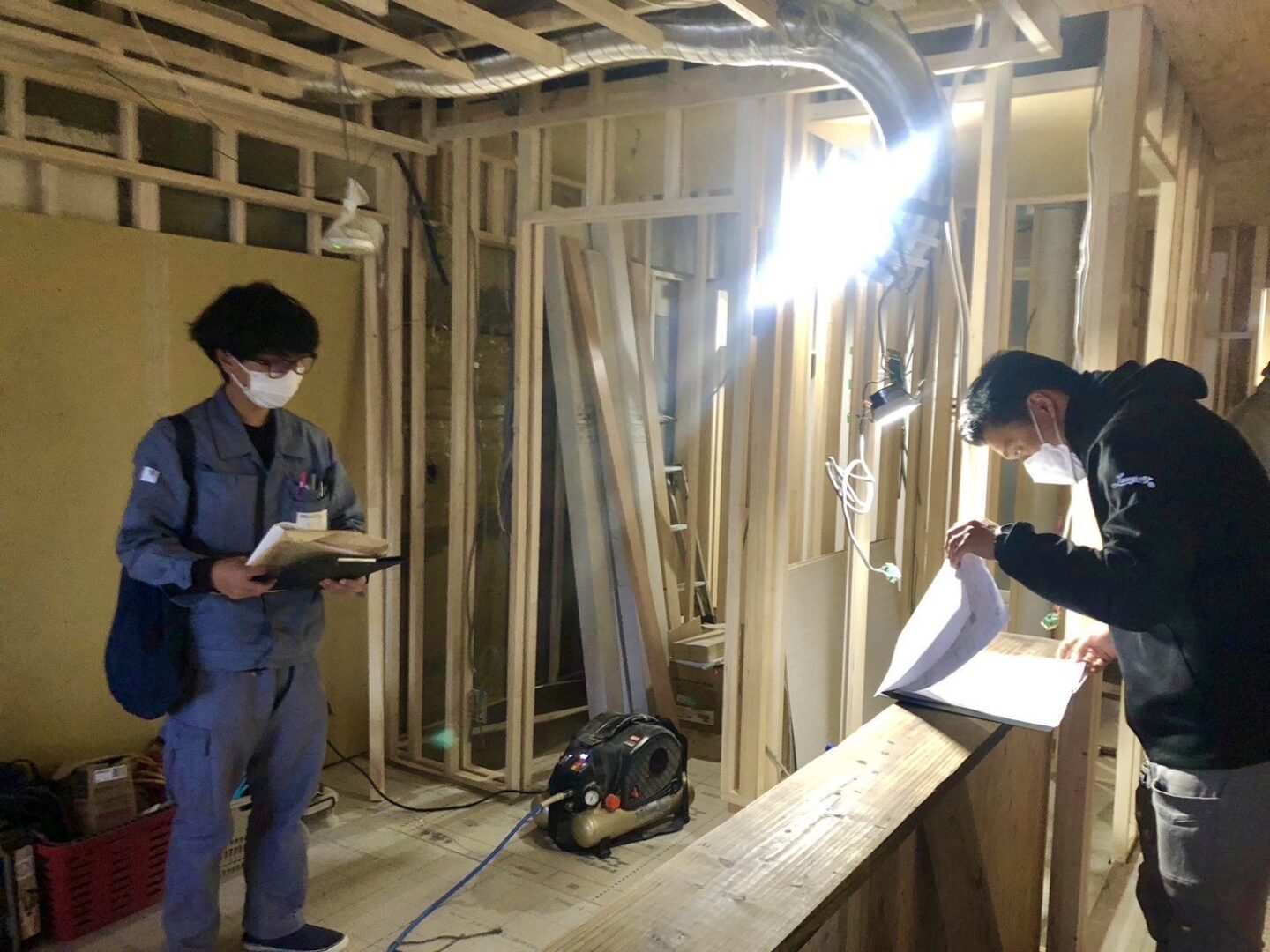 仕上げに向けて皆さんで会議している様子です。念入りに図面を確認したり相互にコミュニケーションをとって確認!確認!確認!!とっても大事な事ですね!☺️