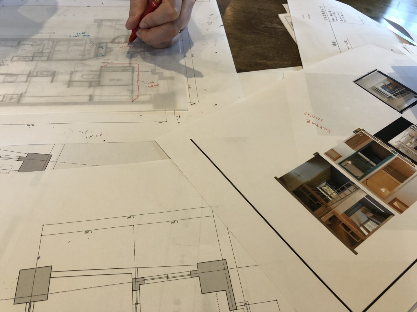 今回のプランミーティングは第2弾。前回大まかなプランが決まったのすが、もう1案捻り出し、お客様に暮らしを比較していただけるようにしようという段階です。