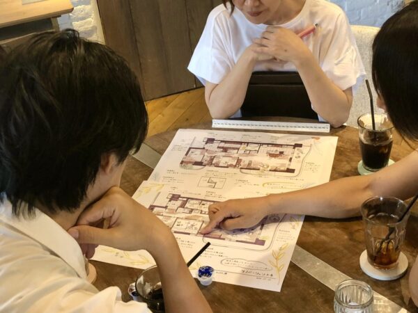 今回は間取りプランのお披露目なのでここからさらに案を煮詰めていきます。💪✨というのも、この段階でもうちょっとこの部分こうなったらいいなぁというものが出てきます。今日のプレゼンの時間だけでもお客様からも青木さんや社長からもたくさんのアイディアが…!💭