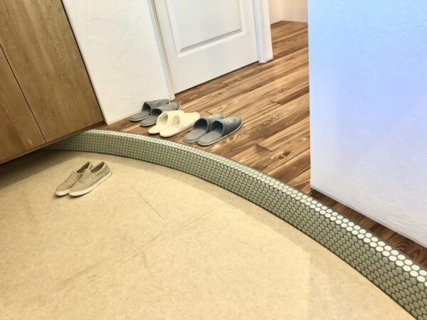 〝打ち合わせの時に素材などもしっかりみてたからなのか、入り口の扉の雰囲気やタイルの色なども思った通りでした。今思い返すと最初にお家の間取りが出来上がる前のヒアリングがすごい意味あったのかなって。自分は全然イメージしたりするのが苦手なんですけど、本当に思い描いていた通りになってます。〟
