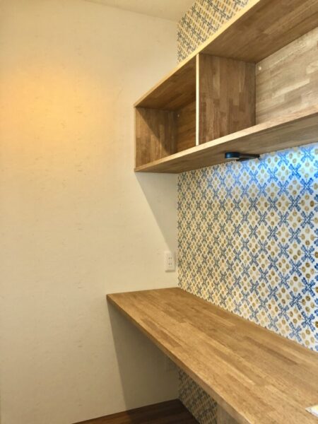 社長:木材のバランスやちょっと垣間見えるブルーの部分もいいよね。ワークスペースのクロスの柄もアクセントなりつつ統一感あっていいね☺️