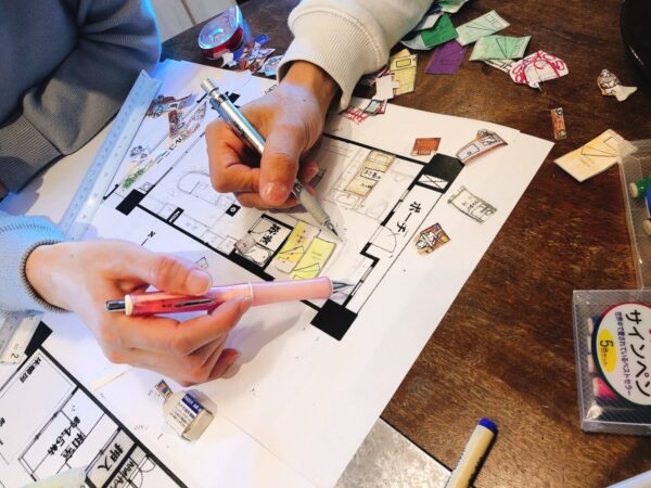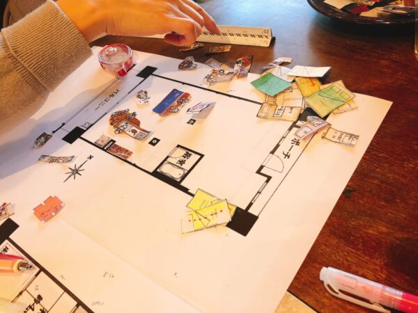 私が今まで建築の学校で設計プランを描く時にやってきたことは、コンセプトを基に書いては消してを繰り返し、必要な家の設備機能を図面に落とし込んでいくことでした。
