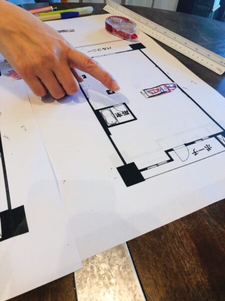 なので図面に家具を置いては、ずらして、回転させて、くっつけたり、離したり…。
