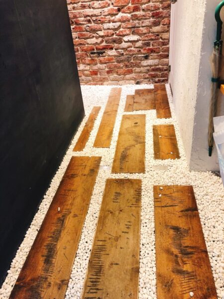 玄関の扉を開けるとまず広がっているのがこの砂利の道。
