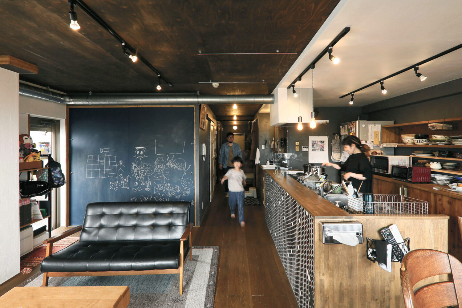 このマンションリノベーション事例は、戸建てを検討していたご夫婦がマンションを選び、理想の空間を実現した成功例です。ヴィンテージドアや素材にこだわったインテリア、広い土間スペースを活かした個性的な住まいに生まれ変わりました。綿密な打ち合わせを重ね、暮らしの楽しさが広がるデザイン性と機能性を両立。新築では叶わない、家族のライフスタイルにぴったりの住まいが完成しました。